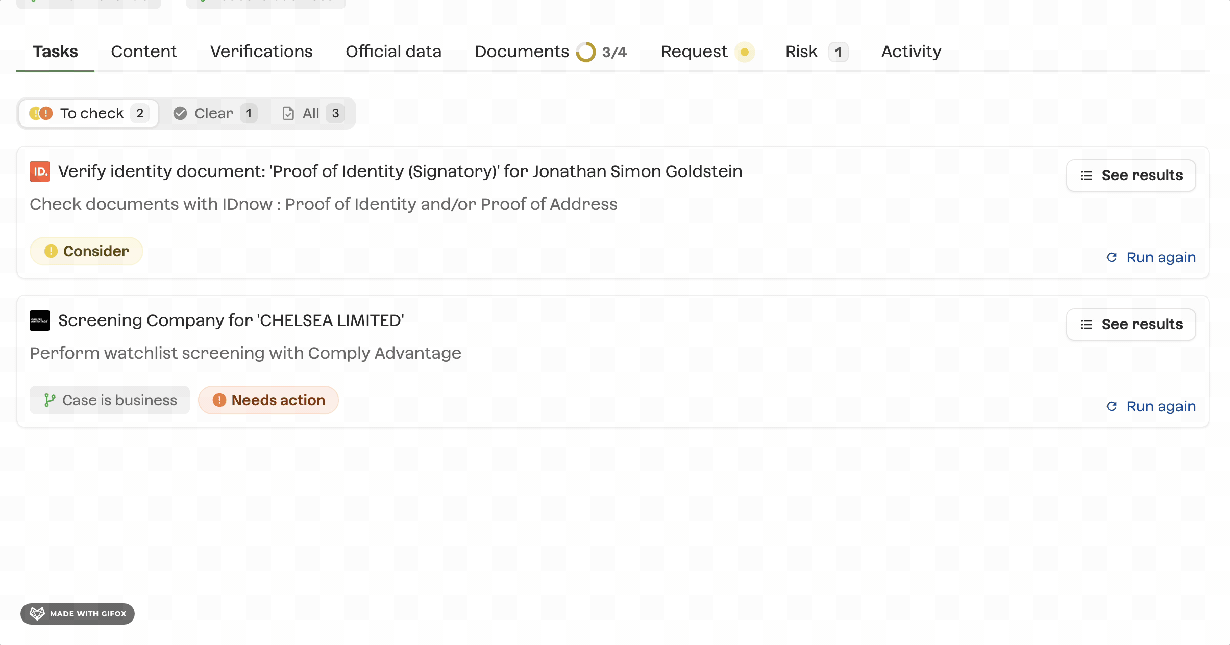 New filtered view of tasks: the tasks tab is now filterable by status group: to check or clear.