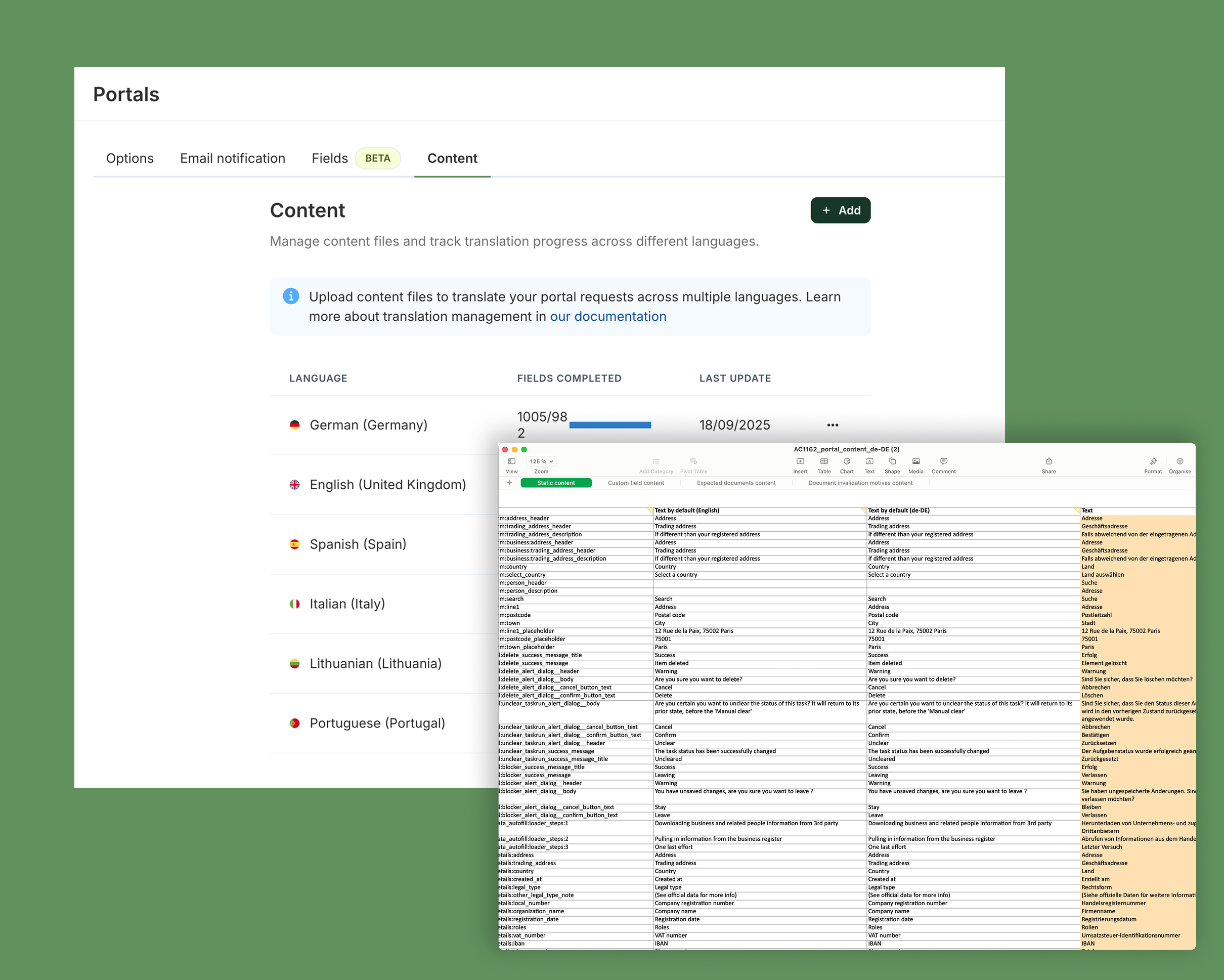 All text and wording of the user interface are customisable and localised to your customer’s preferred language.